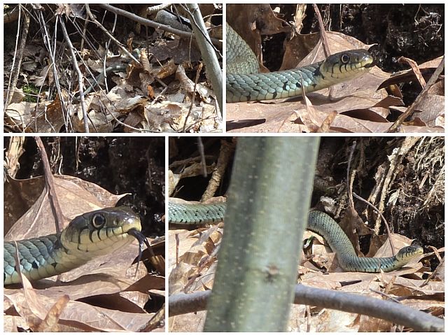 Ein besonders spannender Moment war die Entdeckung einer Schlange im trockenen Laub. Es handelte sich sehr wahrscheinlich um eine Ringelnatter. Ihr grünlich schimmernder Körper und der charakteristische helle Nackenbereich machten sie gut erkennbar. Sie bewegte sich ruhig und elegant zwischen den Blättern – völlig ungefährlich, aber faszinierend zu beobachten. Die Emmapyramide war leider geschlossen. Von dort oben hätten wir sicherlich einen herrlichen Blick über den Park gehabt.