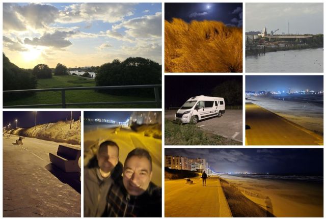 Von Anfang an. Wir starteten am Samstag nach der Arbeit Richtung Dunkerque in Frankreich. Das Wetter war stürmisch und der Gedanke an die Überfahrt in die Ferne begleitete uns – ob das am nächsten Tag gut gehen würde, schwirrte ständig im Kopf. Die Nacht war ebenfalls stürmisch und ließ das Wohnmobil ordentlich schwanken, sodass an Schlaf kaum zu denken war.