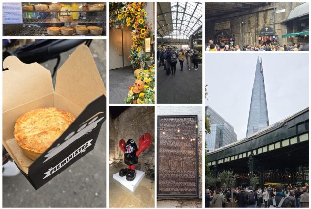 Unser Weg führte uns über den Fußweg zum Borough Market, dem berühmten Feinschmecker-Paradies. Die lebendige Atmosphäre dort ist fast greifbar: Düfte von frischem Brot, exotischen Gewürzen und warmen Speisen mischen sich mit dem Klang von Gesprächen und dem Rascheln von Einkaufstüten. Wir schlenderten durch die Stände, probierten Kleinigkeiten und genossen die Vielfalt, die der Markt zu bieten hat. Und ganz typisch für diesen Ort: Man trifft Stare, die ihr Liedchen zwitschernd in die Luft schicken – kleine, fröhliche Begleiter auf dem Weg durch das Gewirr der Stände.