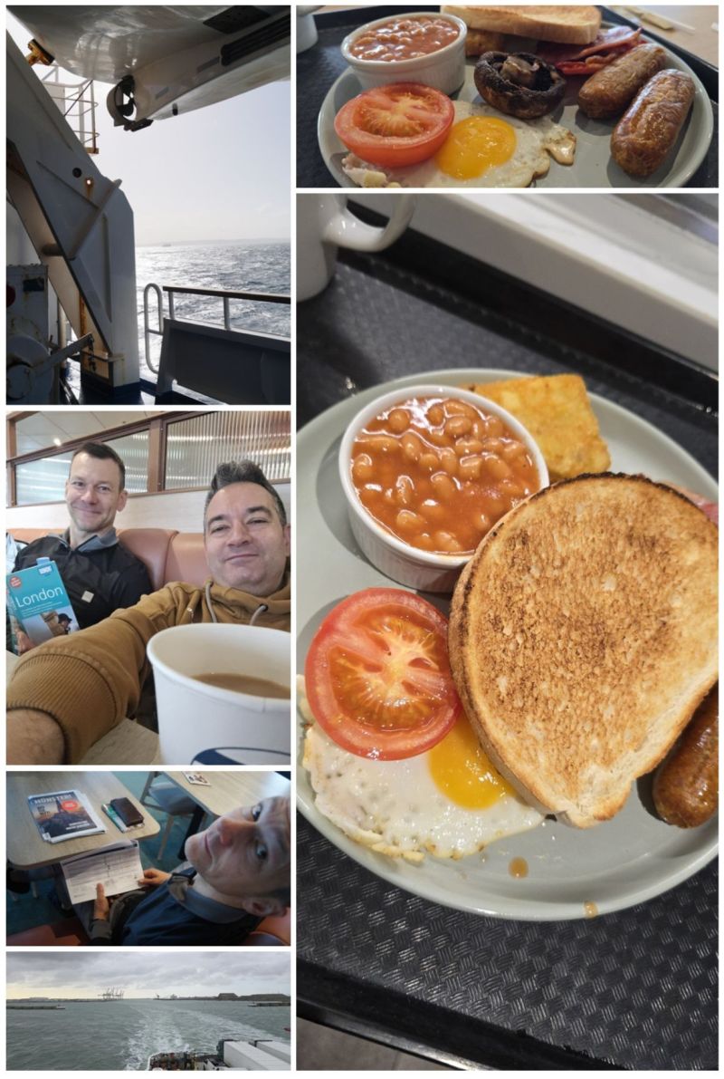 Nach dem ersten, rauen Aufeinandertreffen mit dem Wasser gab es auf der Fähre ein ordentliches Full English Breakfast. Rührei, gebratene Würstchen, Speck, gebackene Bohnen, gebratene Tomaten und Toast – eine herzhafte Starthilfe, die einem die Reise gemütlich und sättigend versorgte, während draußen der Horizont vorbeizog.