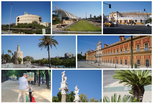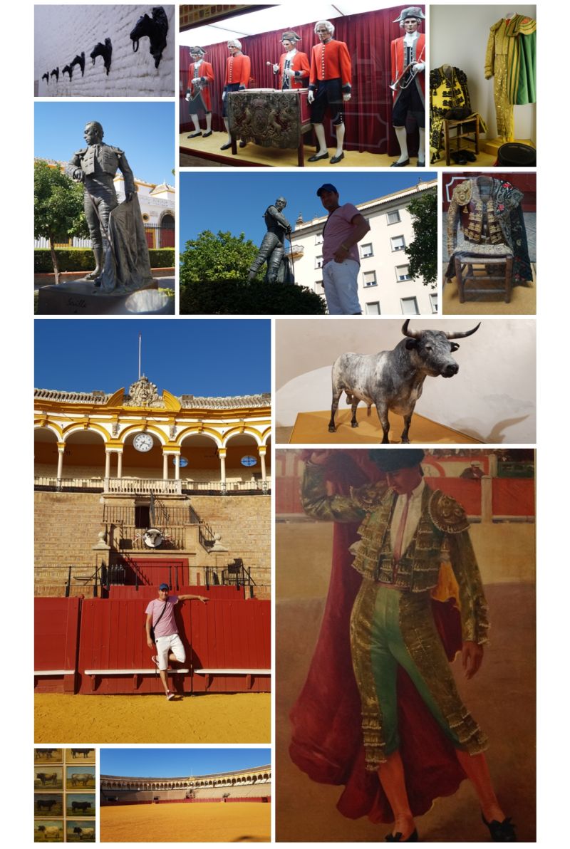 In Sevilla angekommen, habe ich mir ein Sightseeing-Bus-Ticket gekauft für 21 €. Meine Zeit ist ziemlich begrenzt, daher habe ich mich für diese Art von Sightseeing entschieden. An einem geschichtsträchtigen Ort bin ich allerdings aus dem Bus ausgestiegen und habe mir die Torero-Arena in Sevilla angesehen. Der Eintritt kostet acht Euro. Ich selber finde Stierkämpfe nicht schön, allerdings hat dieser Ort Geschichte, die man spürt und auch ruhig mal ansehen darf.