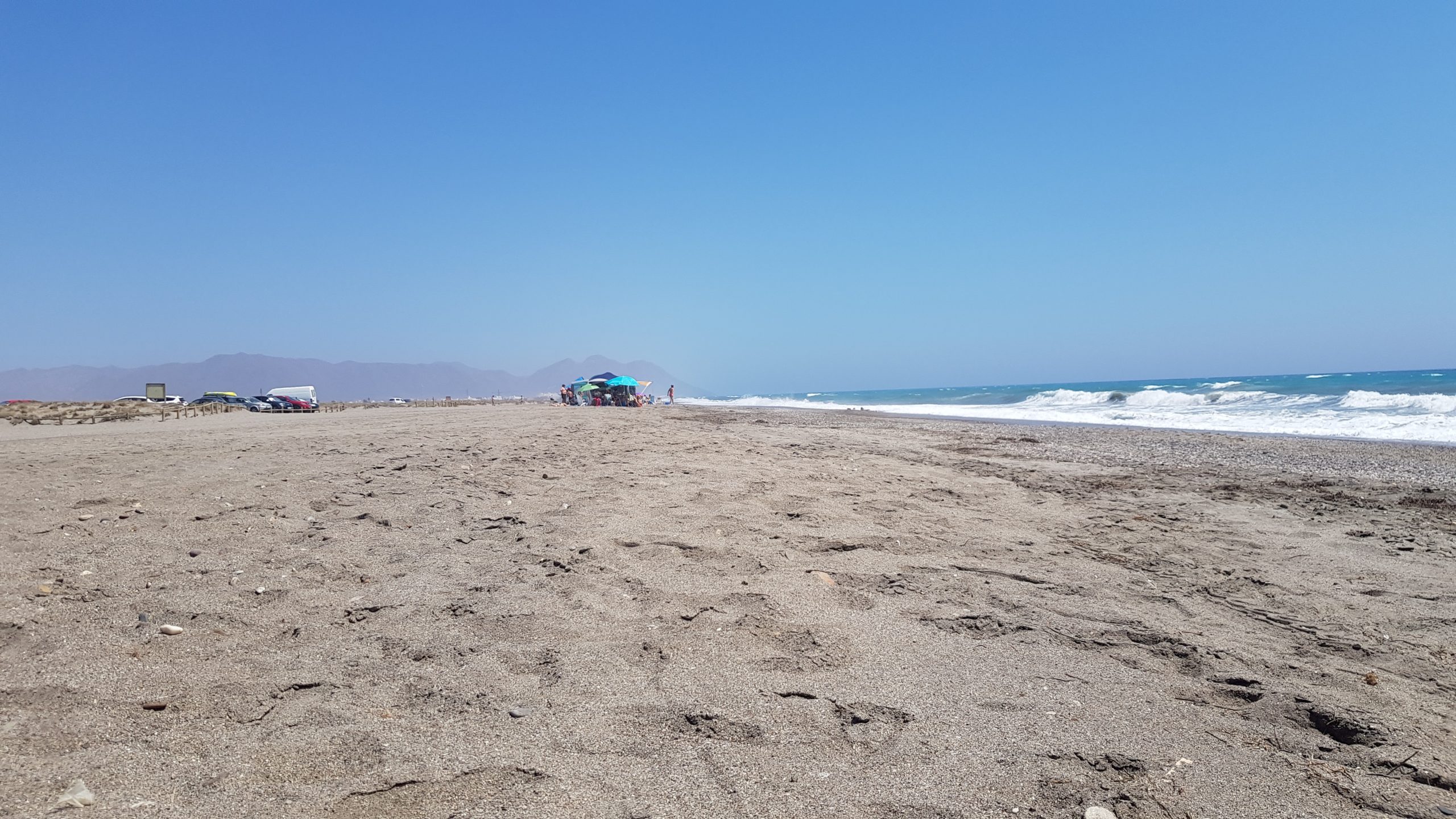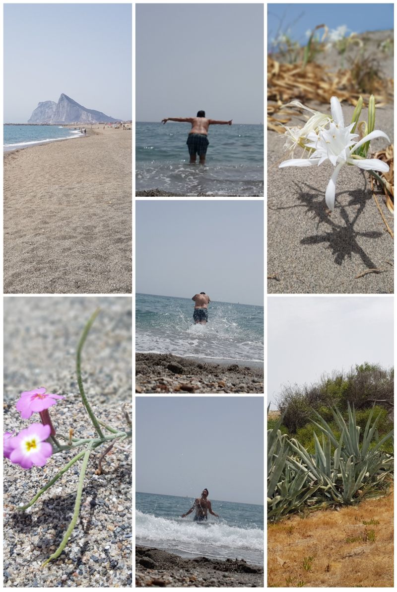 Dort angekommen habe ich mir einen kleinen Campingplatz namens „Sureuropa“ ausgesucht. Camping Sureuropa, Camino Sobrevela, s/n 11300 la Línea de Concepción, Cádiz. Die Nacht kostet ca. 15,50 € Camper mit einer Person. Der Campingplatz wird von einer Art Behindertenwerkstatt gepflegt und betrieben. Er hat schöne kleine übersichtliche Parzellen, das war auch alles. Es gibt kein Restaurant und auch keine Freizeitmöglichkeiten direkt hier vor Ort. Er ist schön sauber, liegt keine 5 Minuten vom Strand und ca. 5 km fußläufig von der Grenze zu Gibraltar. Der nahe liegenden Strand hat richtig viel Platz! Das war mal ein richtig schönes Erlebnis. Ich kenne auch andere Strände, wo man fast schon aneinander klebt und sich das eigene Tuch mit dem Nachbarn teilt, weil so wenig Platz ist …