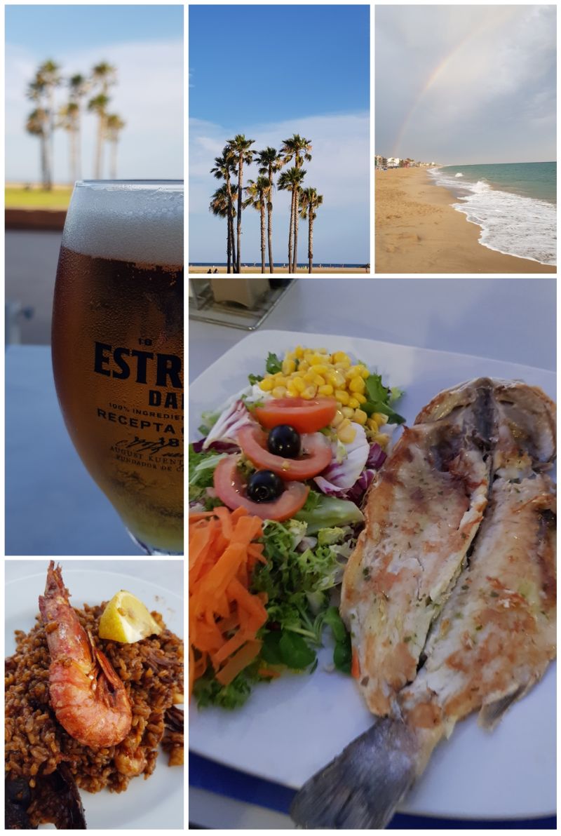 Die Rücklichter meines Campingwagens konnte man schnell aus machen, nachdem ich am nächsten Morgen den Campingplatz verlassen hatte. Ich habe mich schnellstmöglich aufgemacht in Richtung Valencia. Auf der Fahrt nach Valencia habe ich viele Burgen rechts und links der Autobahn gesehen und hatte mal überlegt, ob ich noch einmal abfahren möchte, um mir diese anzusehen. Allerdings sind diese maurischen Burgen aufgebaut wie jede andere, auch der Innenausstattung ist eh nicht mehr zu sehen … somit hätte ich wahrscheinlich Eintrittsgelder bezahlt, um das zu sehen, was ich schon gesehen habe. So blieb meine Konzentration darauf, in Richtung Valencia zu fahren. Die Fahrt nach Valencia dauerte ca. 4 Stunden. Ich habe meinen Campingplatz im Vorfeld ausgesucht und habe mich direkt dorthin navigieren lassen. Ziemlich kurz vor Schluss habe ich mich allerdings „Verfahren“. Ich bin vorbeigefahren am Campingplatz, direkt zum Strand. Hier hatte ich eine schöne Aussicht vom Strand mit Blickrichtung Valencia.
